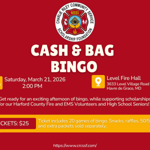 2026 Cash & Bag Bingo Bingo packages will be $25 per package and include all ... 21 Mar 2:00 pm - 4:00 pm Level Volunteer Fire Company3633 Level Village Rd Havre de Grace, MD 21078